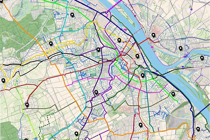 Im Rahmen des Projekts Mapathon wurde für die Stadt Mainz in Zusammenarbeit mit über 120 Radfahrer*innen der Stadt und Fahrrad-nahen Vereinen ein Radwegenetz konzipiert.