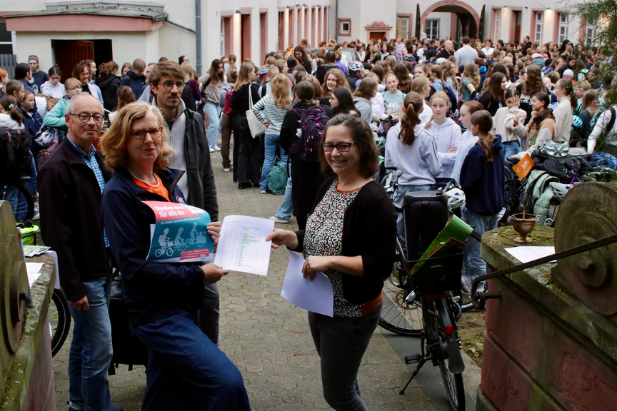 Am Freitag den 13.10.2023 sind die Schülerinnen dann mit dem Fahrrad zur Schule gekommen, um zu zeigen, dass sie tatsächlich so viele sind, dass die Stadt die Bedürfnisse nach Schulweg-Sicherheit ernst nehmen muss.