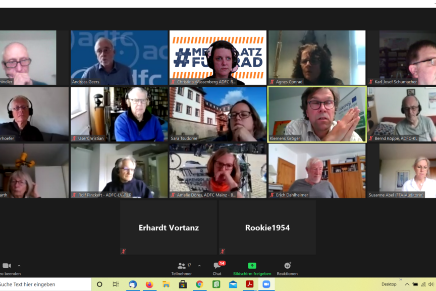 Du möchtest ebenfalls teilnehmen? Egal ob du aktiv mitreden möchtest oder einfach nur zuhören; du bist herzlich willkommen. Schreibe eine kurze Nachricht an info [at] adfc-rlp.de damit wir dir zur nächsten Veranstaltung die Einladung schicken können.